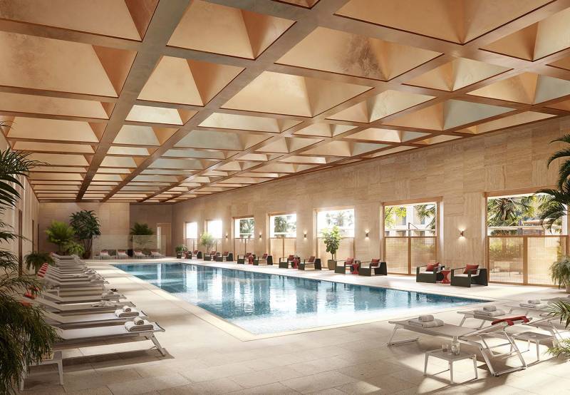 تم تصميم الفندق من قبل شركة الهندسة المعمارية الشهيرة Skidmore, Owings & Merrill مع تصاميم داخلية من تنفيذ Richmond International.